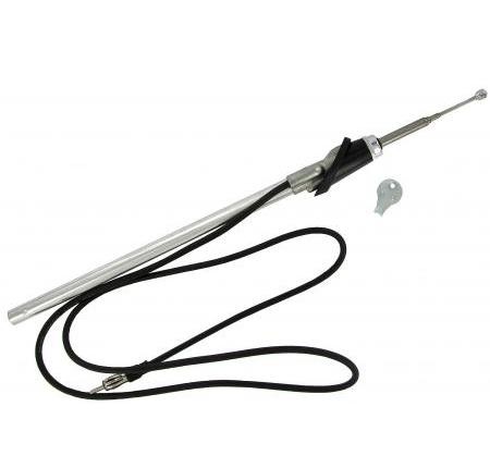 Antenna cromata a sfilo con base nera.