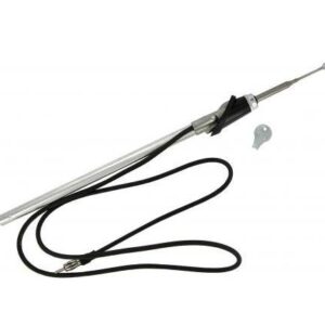 Antenna cromata a sfilo con base nera.