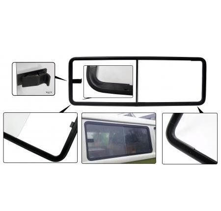Finestrino centrale sinistro scorrevole con cornice nera .