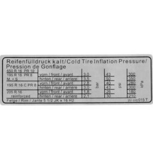 Adesivo per la pressione degli pneumatici.