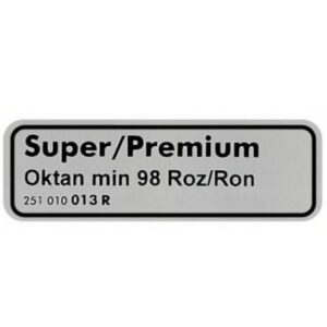 Adesivo `carburante senza piombo oktan min 91 roz/ron`.