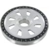 Puleggia albero motore in alluminio con bordo nero.